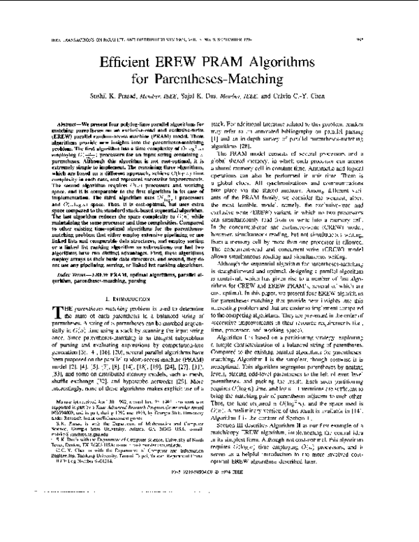 (PDF) Efficient EREW PRAM algorithms for parentheses-matching