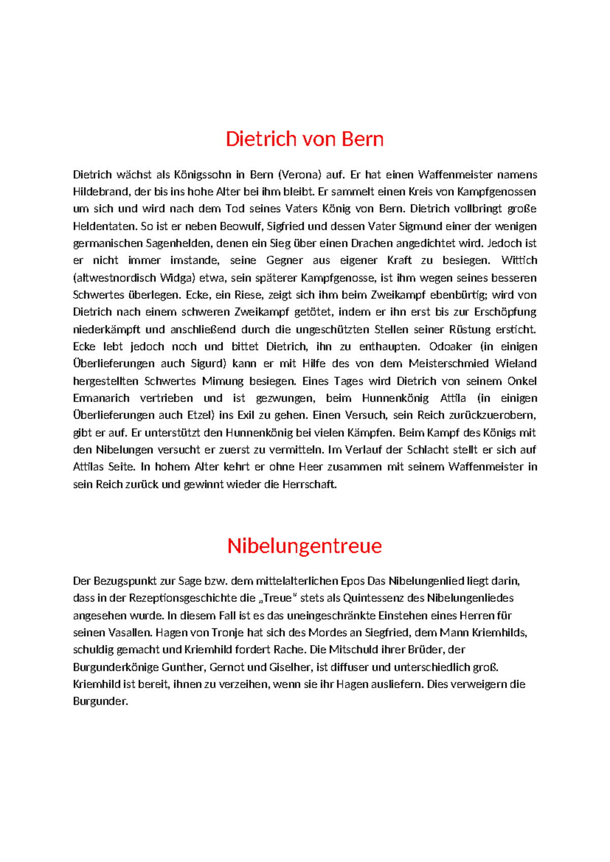 Dietrich von Bern: Heldentaten und Nibelungentreue (Erfv) - Studocu