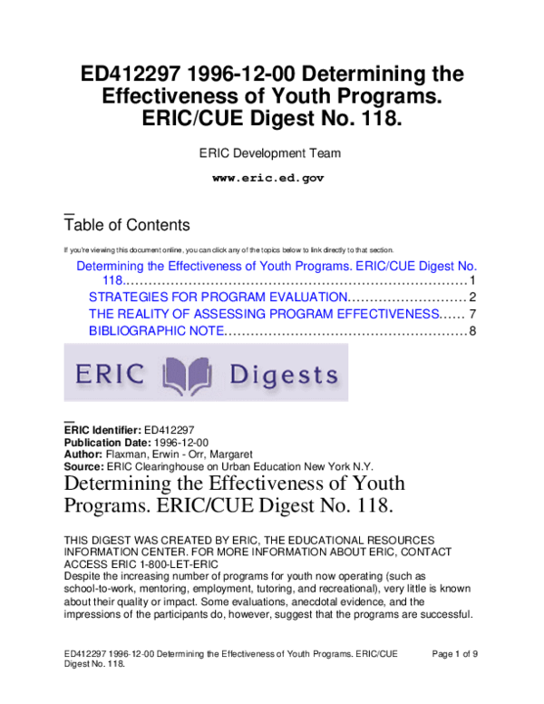 (PDF) Determining the Effectiveness of Youth Programs. ERIC/CUE Digest ...