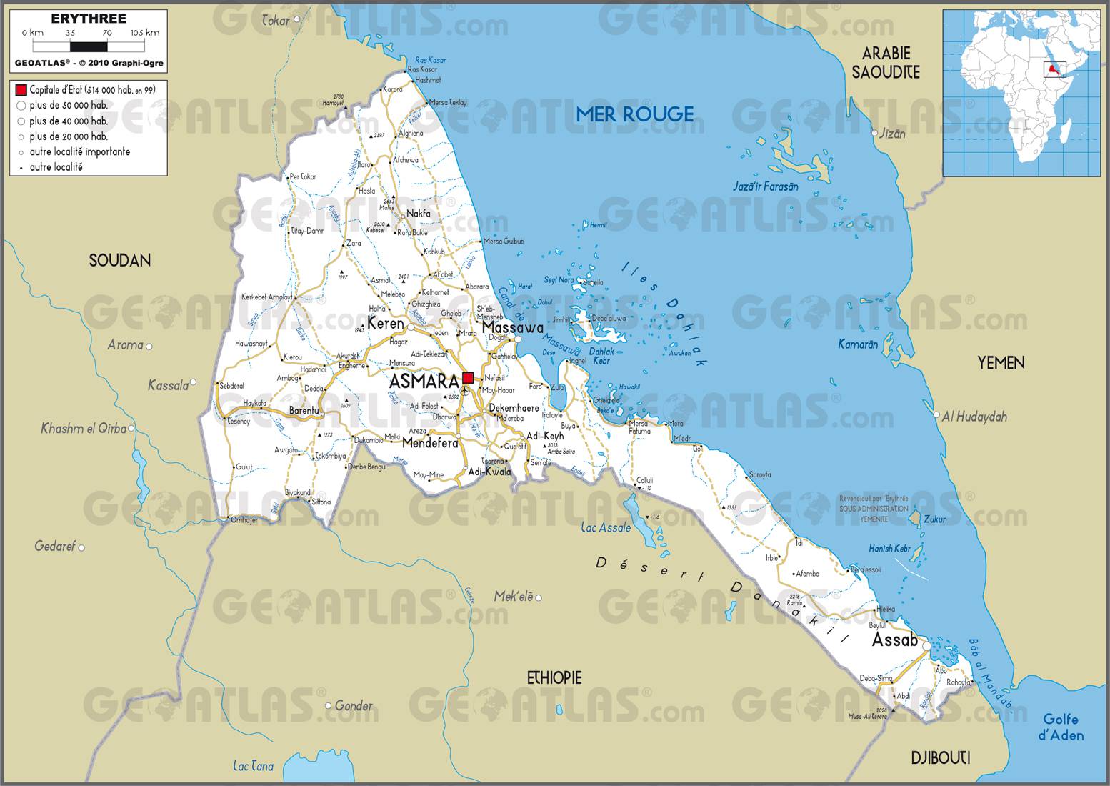 Carte Erythrée — Capitale Asmara, géographie et infos