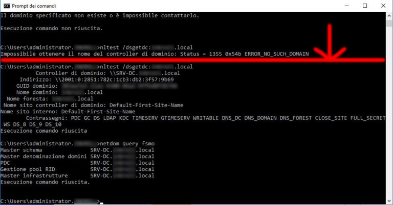 Impossibile ottenere il nome del controller di dominio: Status = 1355 ...