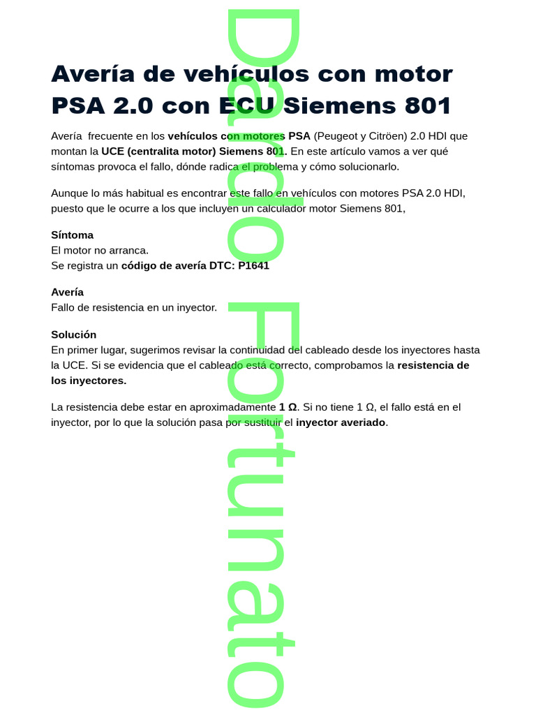 Solución al error P1641 en PSA 2.0 HDI | PDF