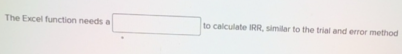 Solved: The Excel function needs a to calculate IRR, similar to the ...