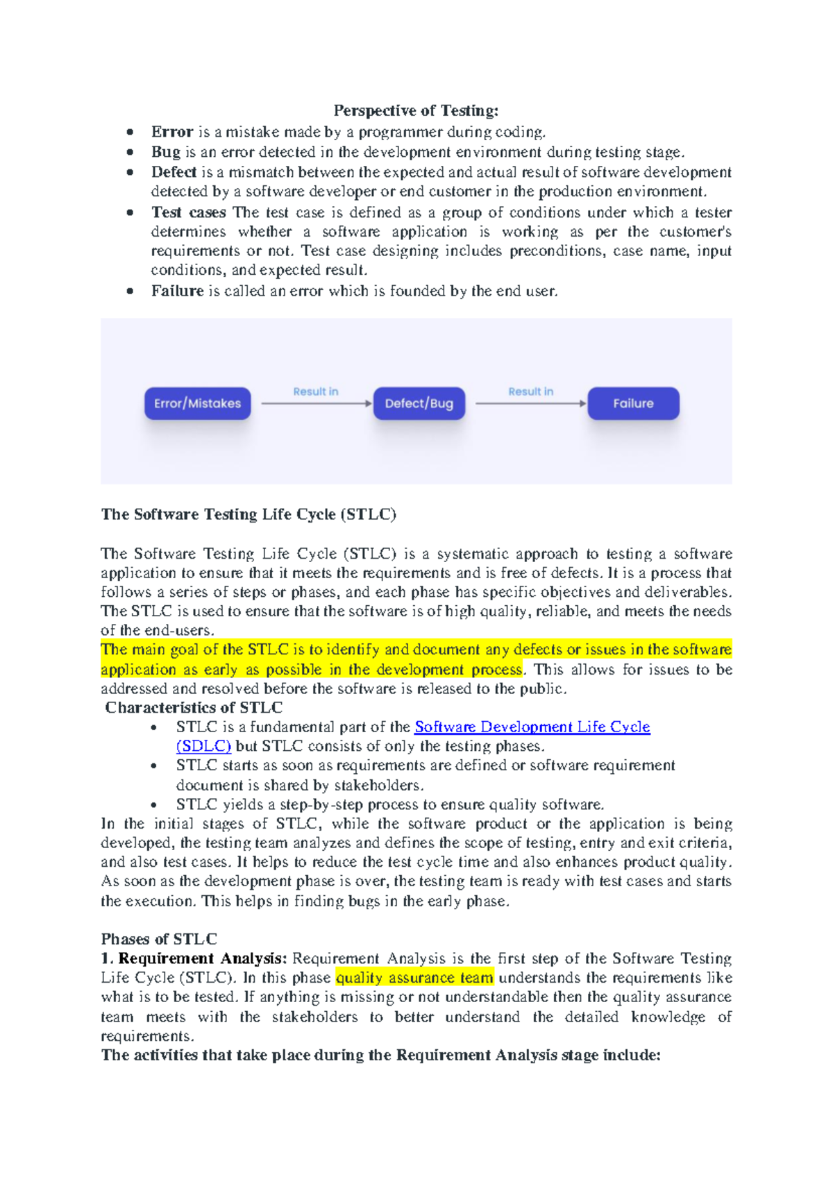 UNIT 1 - software teing notes - Perspective of Testing: Error is a ...