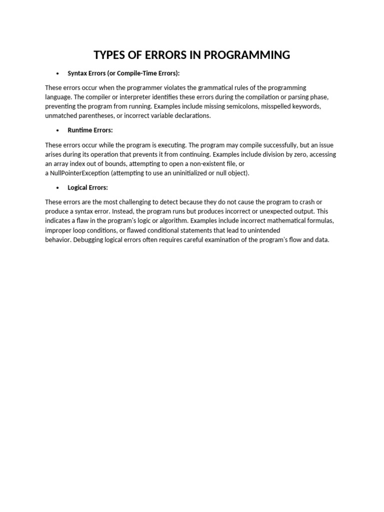 Types of Programming Errors | PPTX | Programming Languages | Computing