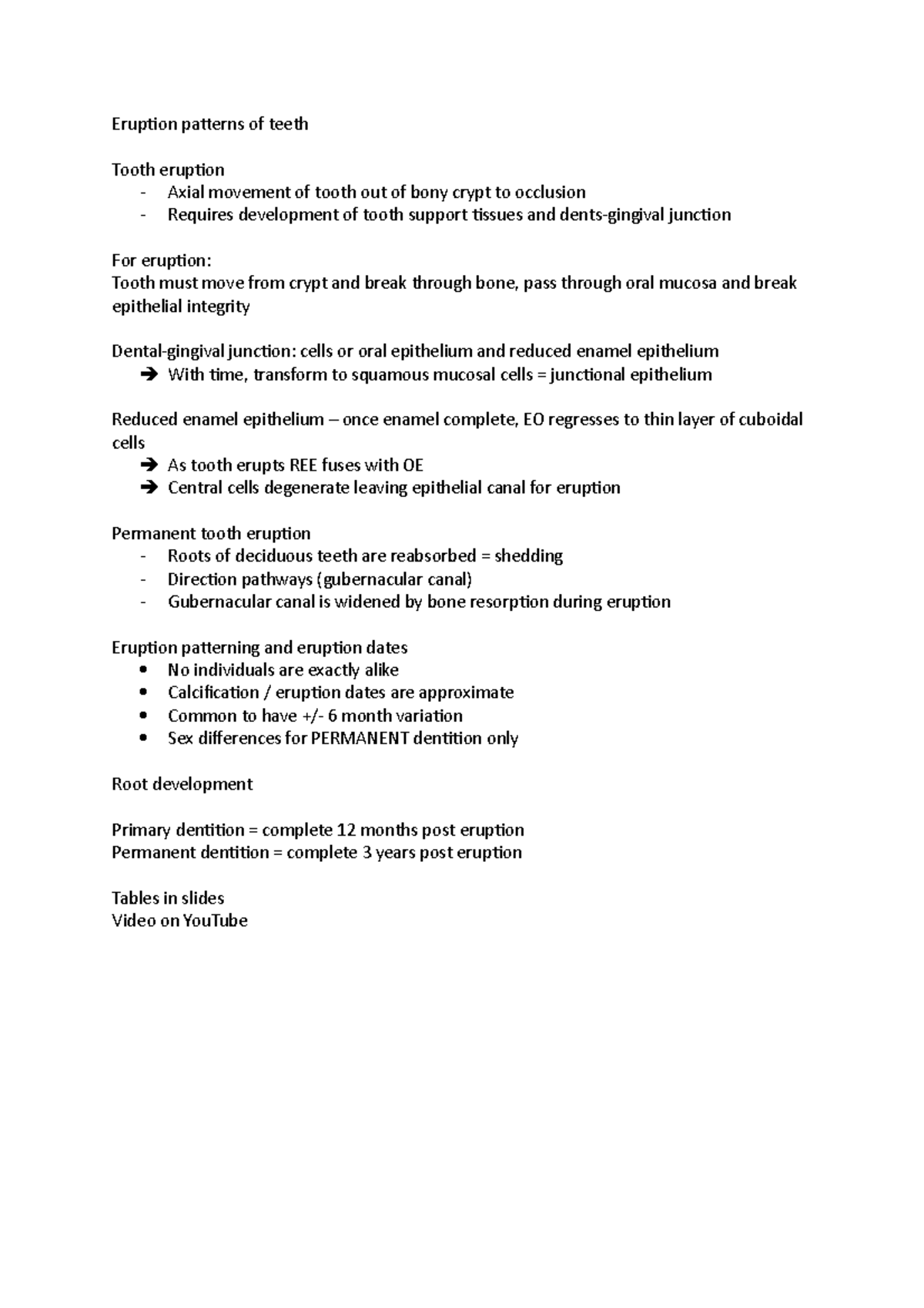 Dental Anatomy: Primary Teeth Development & Eruption Patterns | Course Hero