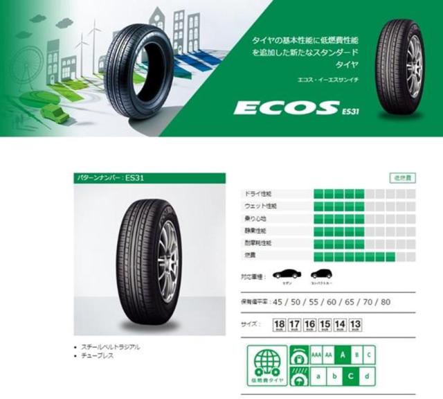 YOKOHAMA(ヨコハマ) ECOS ES31 | 新古品 | アップガレージ つくば店 | カー用品 タイヤ 14インチタイヤを通販で購入 ...