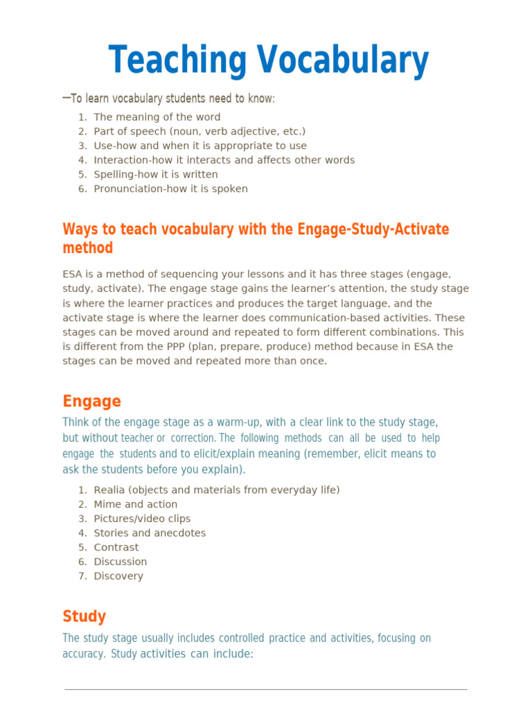 Vocabulary Using ESA Method | PDF | Vocabulary | Learning