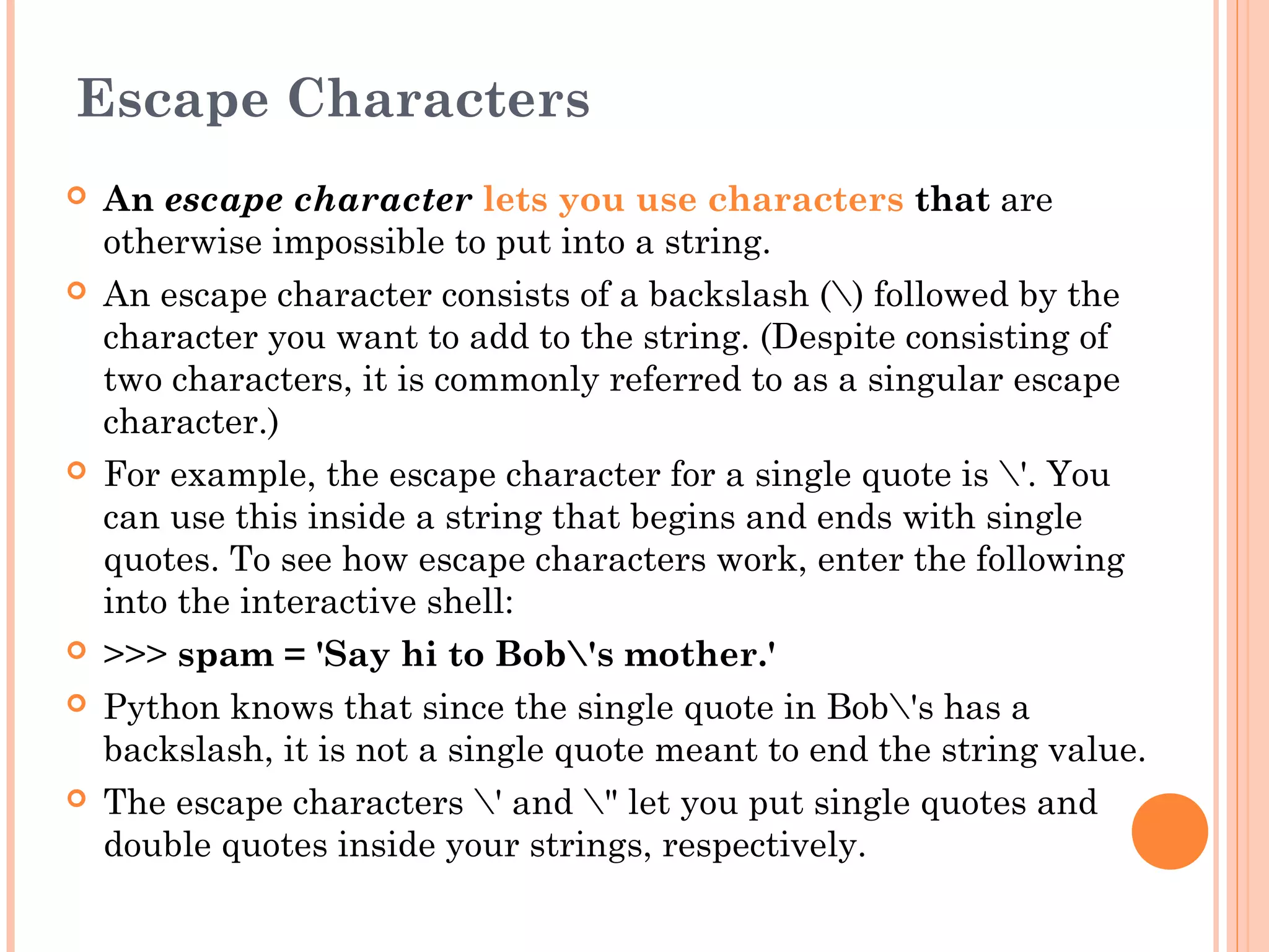 Python | Escape Characters | String Formatting operators | Slicing ...