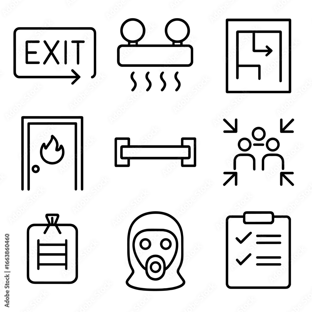 emergency fire exit safety escape icons set 48356221 Vector Art at Vecteezy
