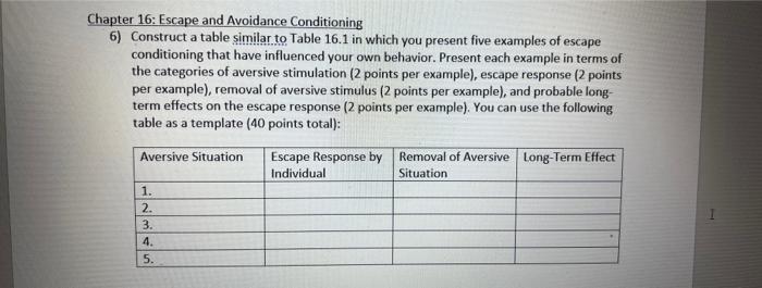 Chapter 16: Escape and Avoidance Conditioning 6) | Chegg.com
