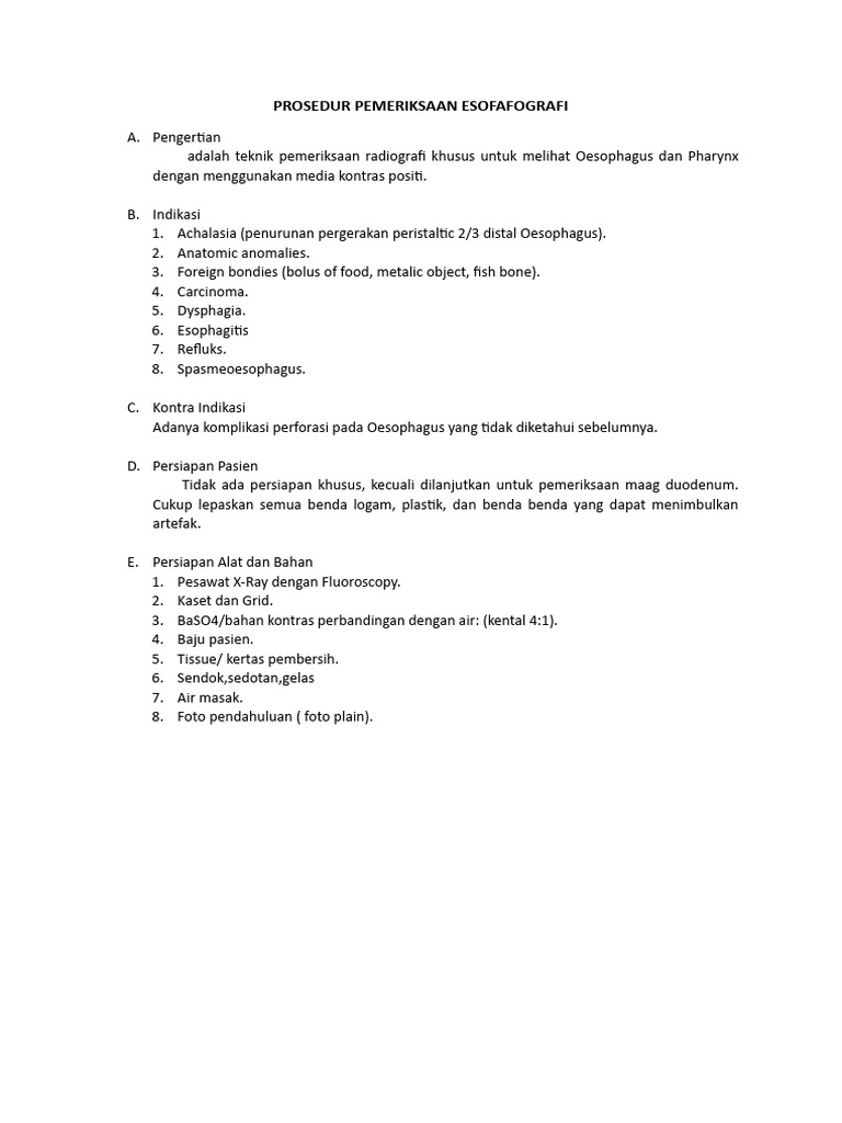 Prosedur Pemeriksaan Esofagografi | PDF | Ilmu Sosial | Kesehatan Holistik