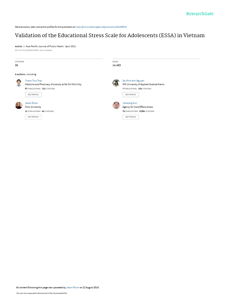 Validation of The ESSA in VN | PDF | Survey Methodology | Psychology