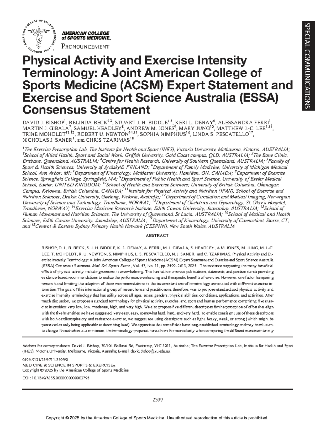 ACSM ESSA Expert Statement: Standard Terminology for Exercise Intensity ...