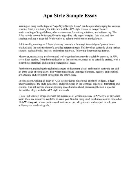 Essay Apa Format Sample. APA Essay Template sample, Bookwormlab | PDF
