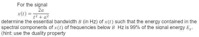 Solved For the signal determine the essential bandwidth B | Chegg.com