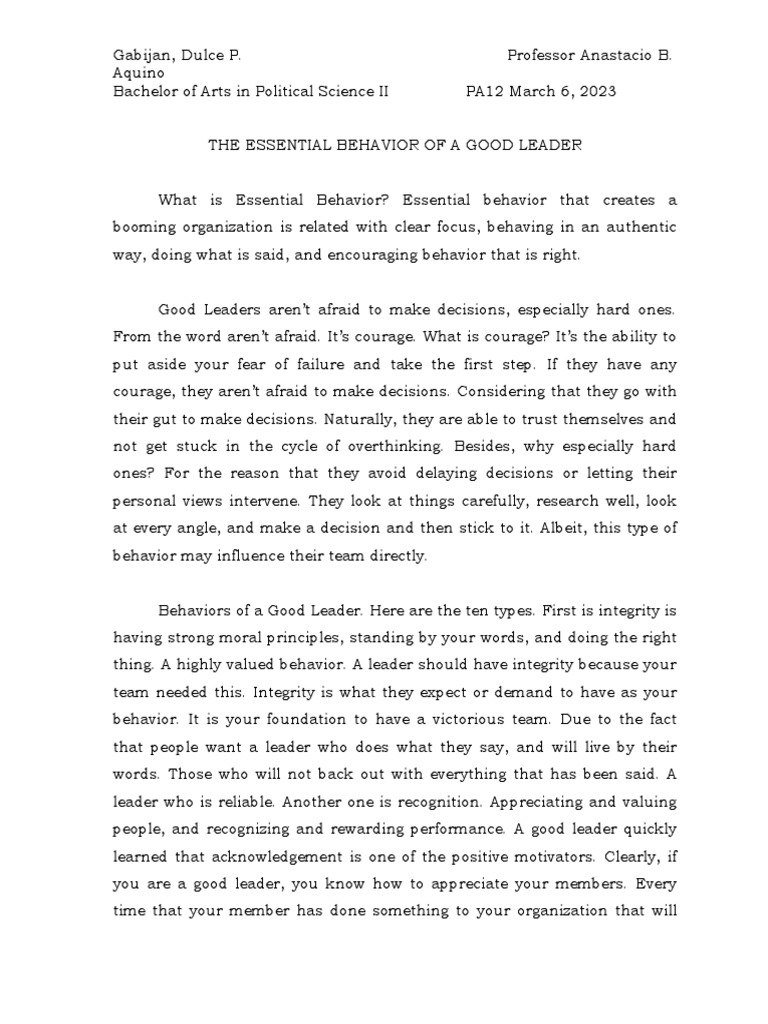 Essential Behavior of Good Leadership Ppt. 2 | PDF
