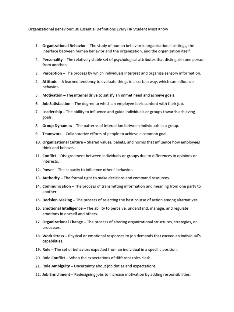 Organizational Behaviour 30 Essential Definitions Every HR Student Must ...