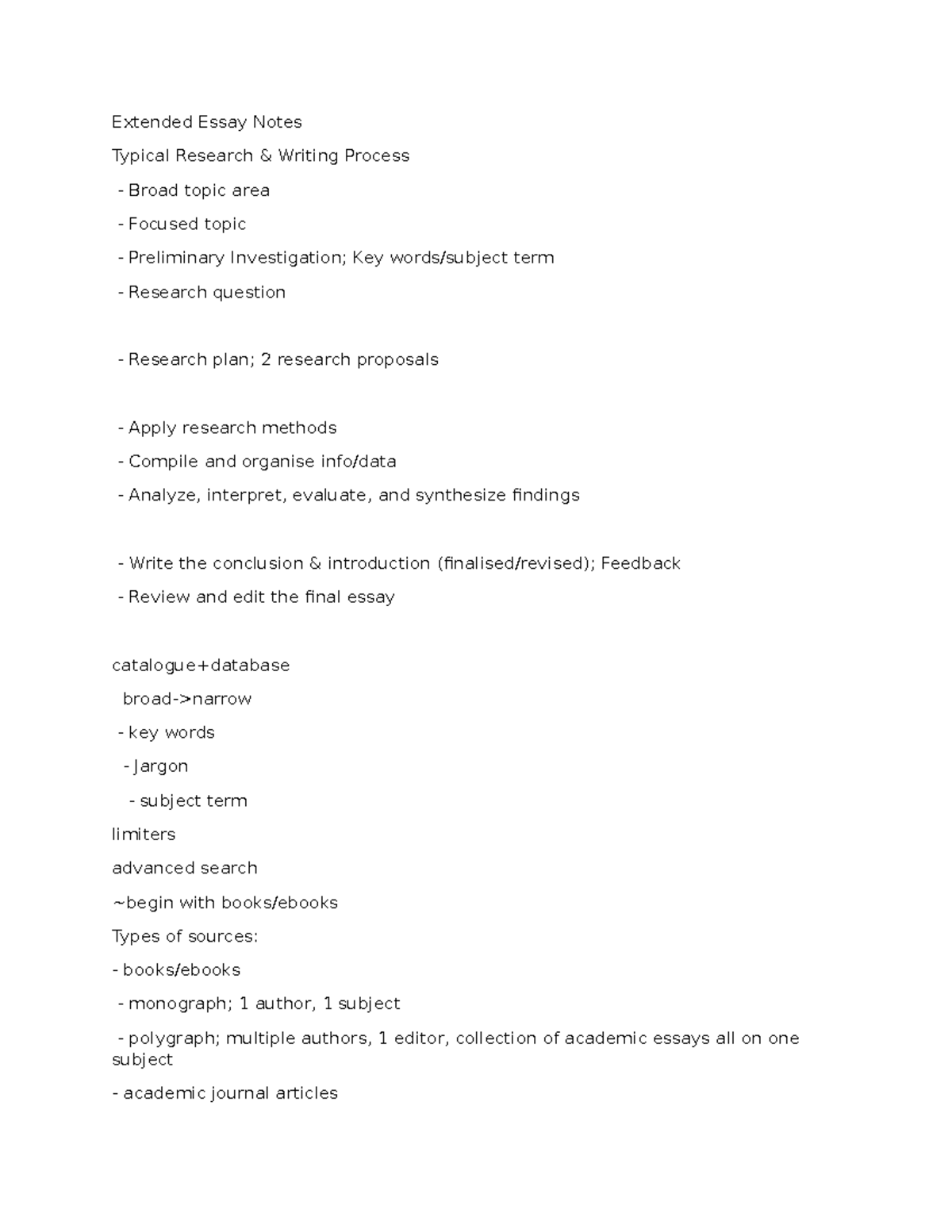 Extended Essay Notes - Extended Essay Notes Typical Research & Writing ...