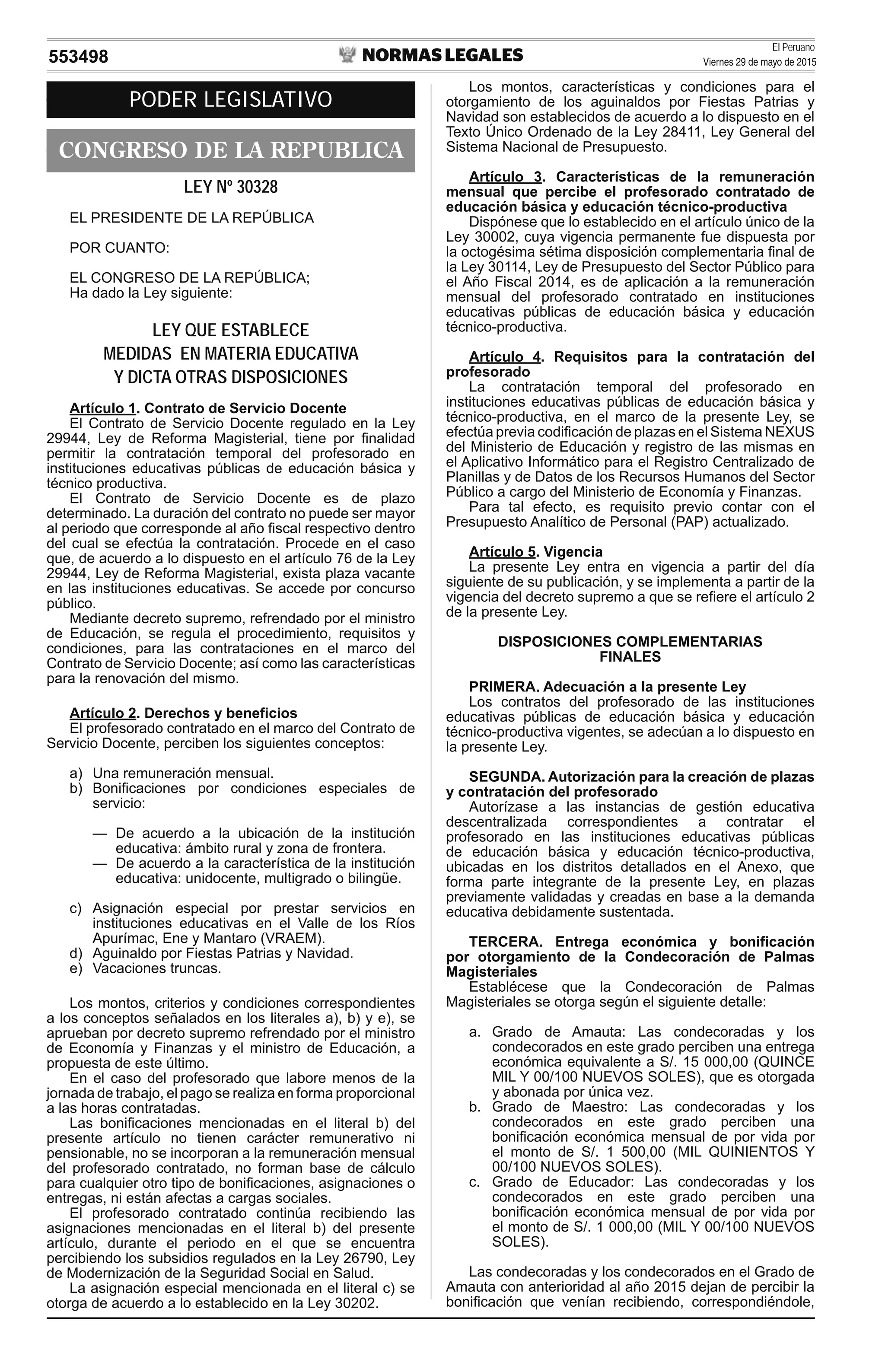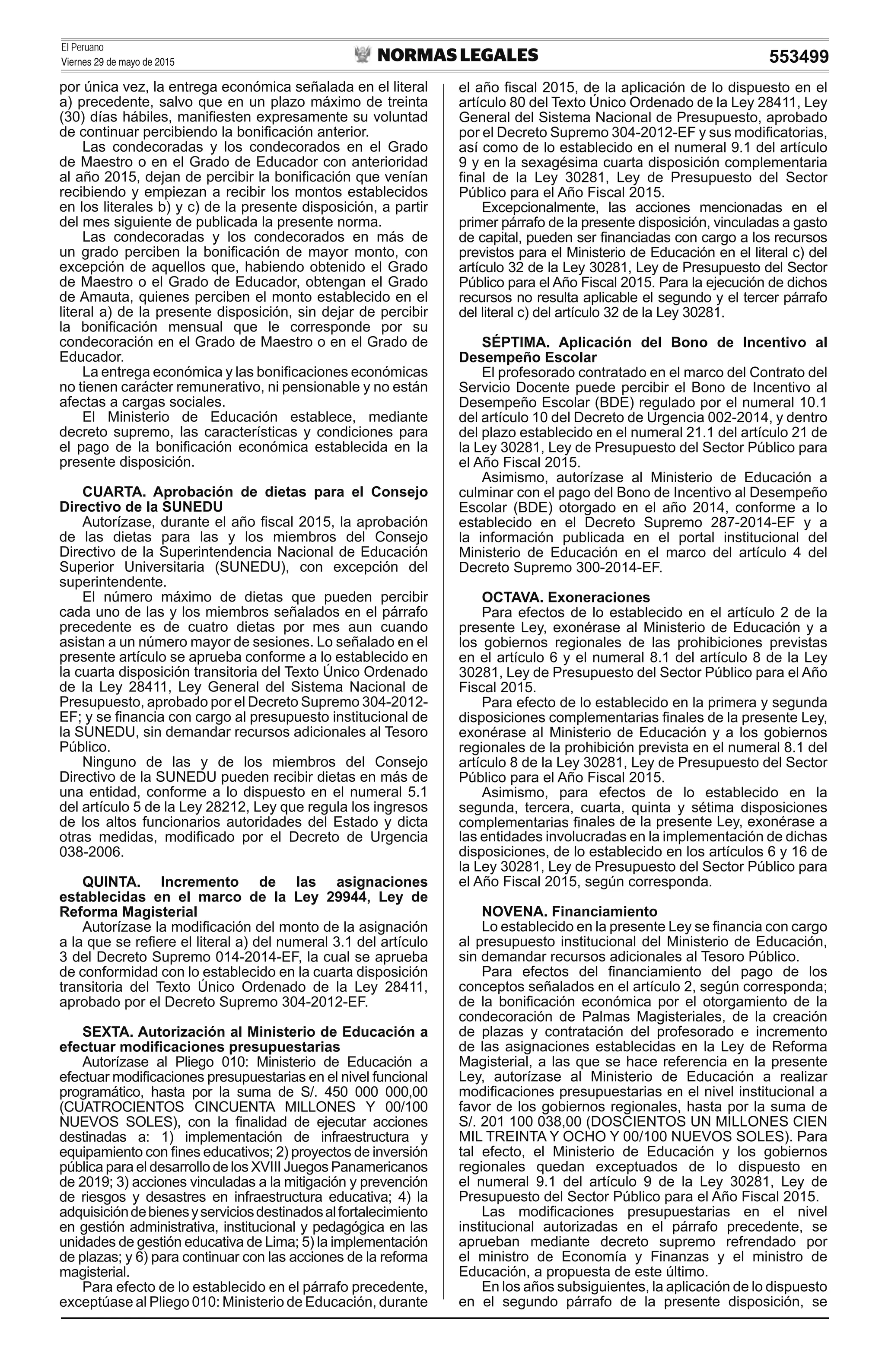 Ley N° 30328 Establece medidas en materia educativa y dicta otras ...