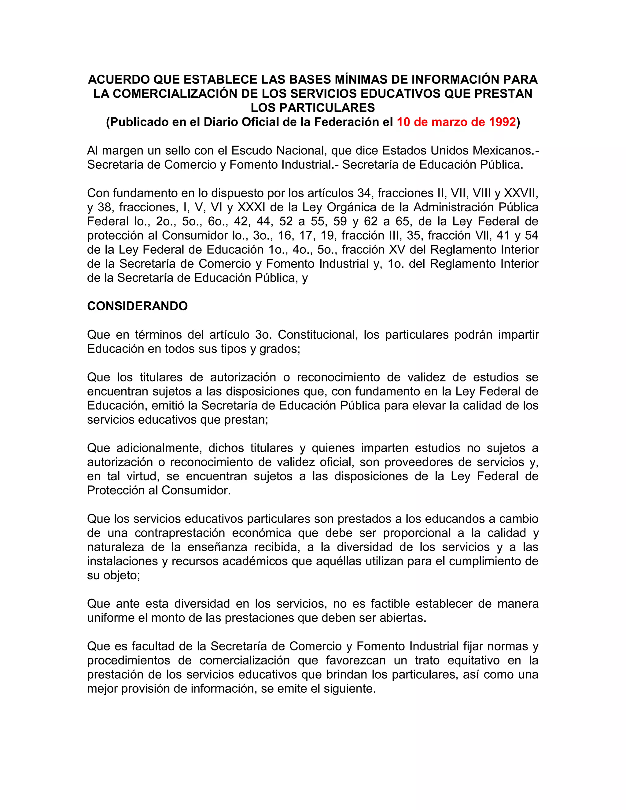 Acuerdo por el que se establece las bases mínimas de información para ...