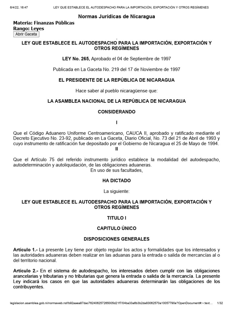Ley 265, Ley Que Establece El Autodespacho para La Importación ...