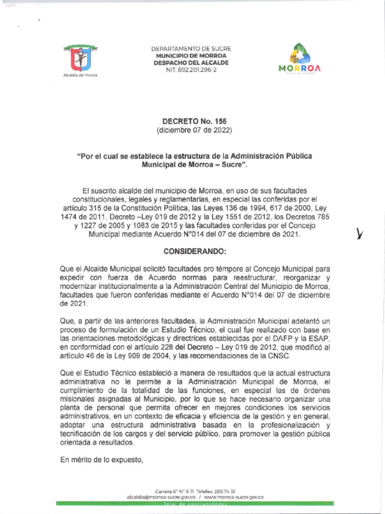Decreto 156 2022 Por El Cual Se Establece La Estructura de La ...