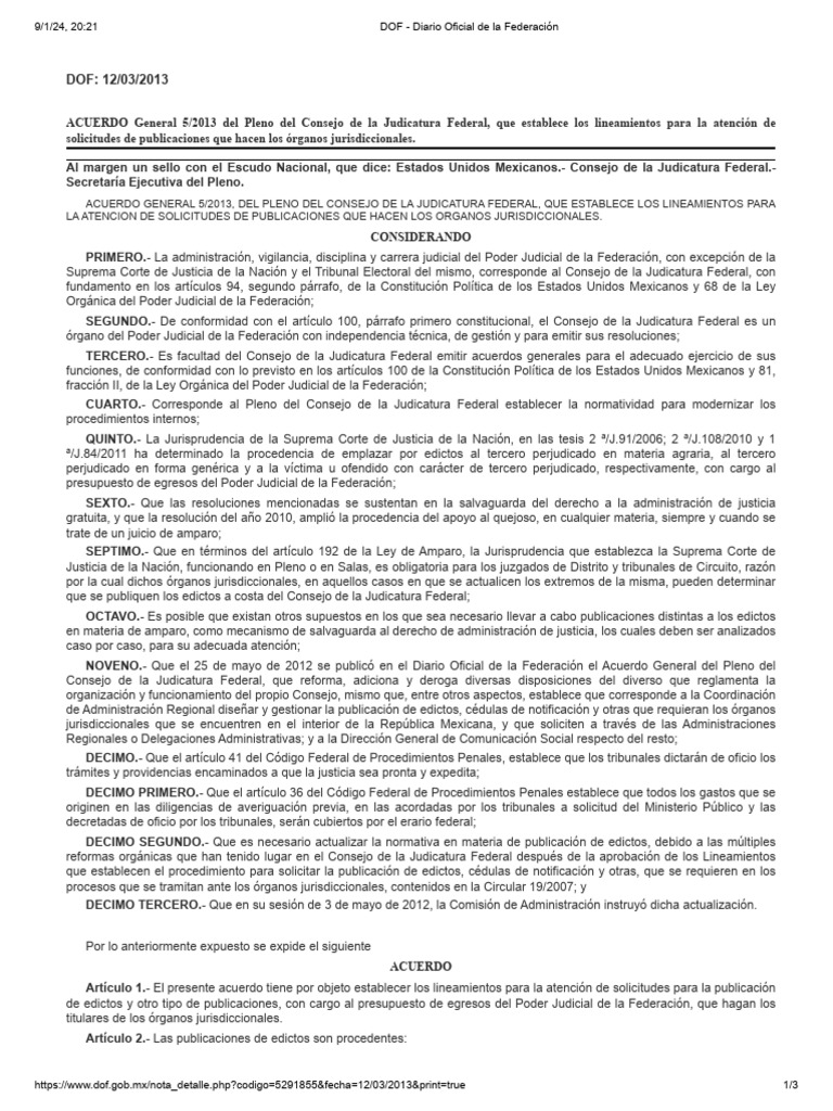 Acuerdo General 5-2013, Que Establece Los Lineamientos para La Atención ...