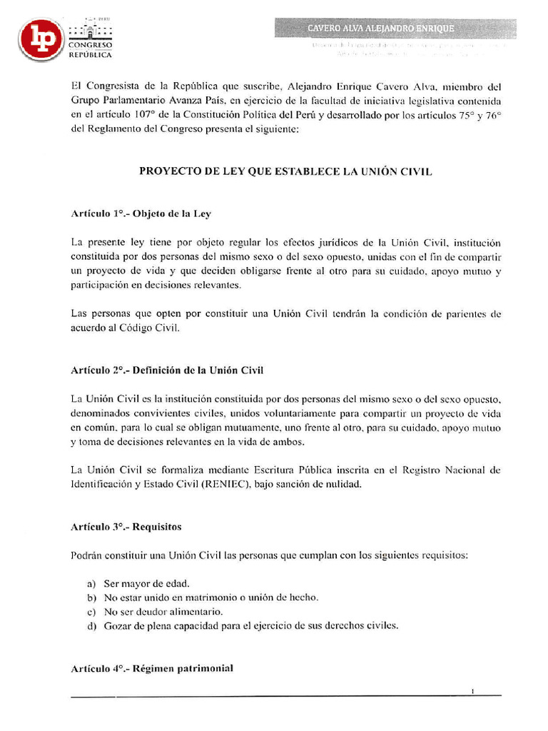 Proyecto Que Establece Union Civil LPDerecho | PDF