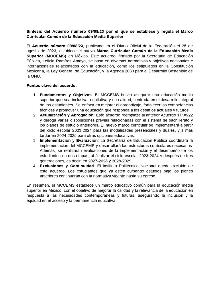 Síntesis Del Acuerdo Número 09-08-23 Por El Que Se Establece y Regula ...