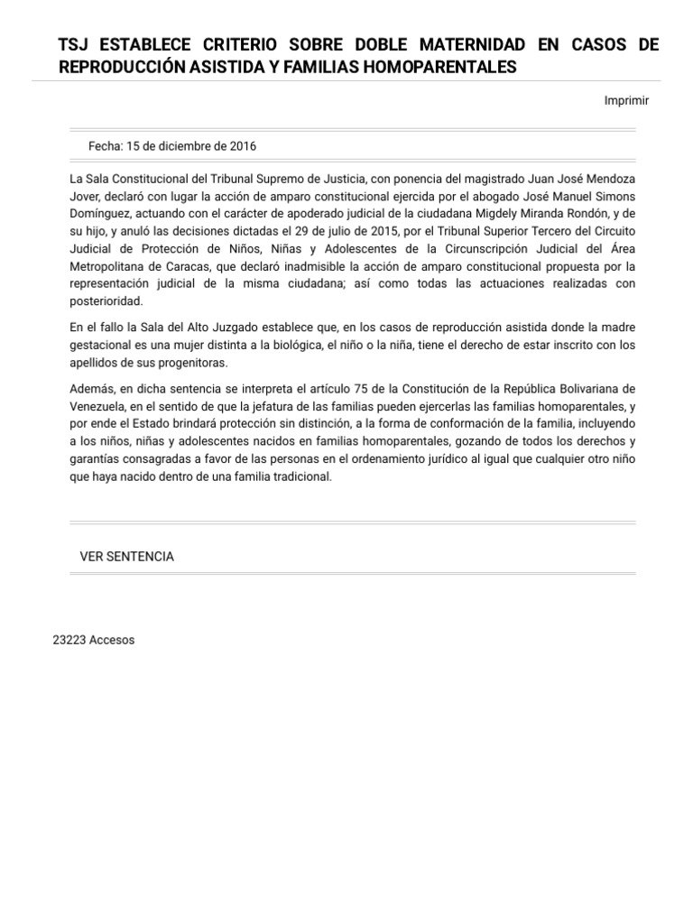 TSJ Establece Criterio Sobre Doble Maternidad en Casos de Reproducción ...
