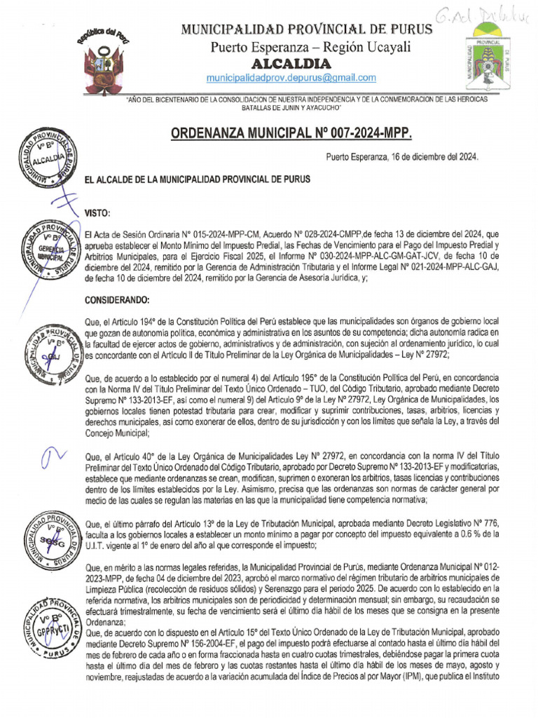 Om #007 2024-MPP Ordenanza Que Establece Monto Mínimo | PDF