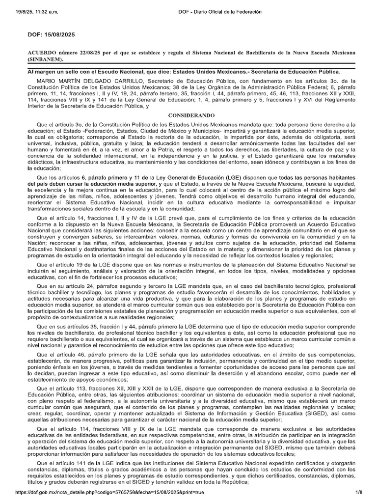 Acuerdo DOF 22-08-2025 Establece y Regula SNBNEM (SINBANEM) | PDF