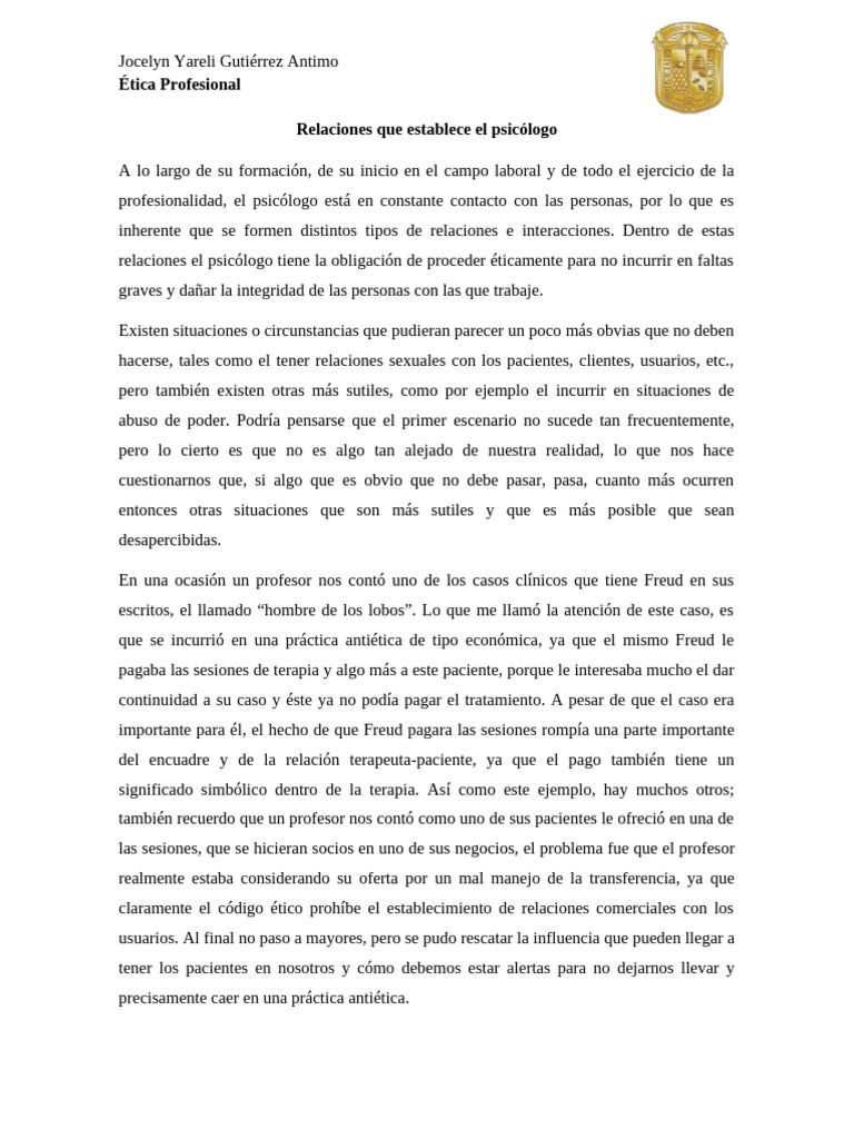 Ensayo - Relaciones Que Establece El Psicólogo | PDF