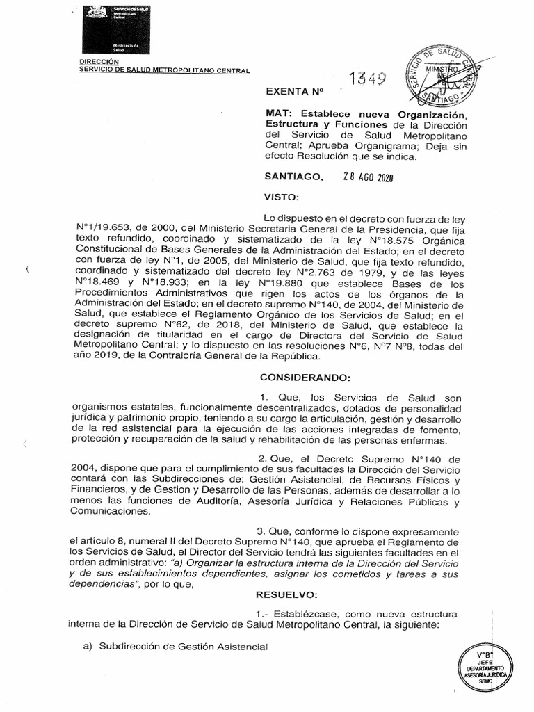 Res. Ex. #1349 Establece Nueva Organizacion Estructura | PDF