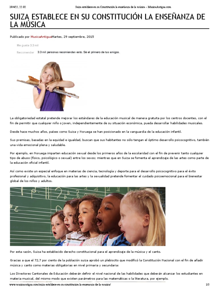 Suiza Establece en Su Constitución La Enseñanza de La Música | PDF ...