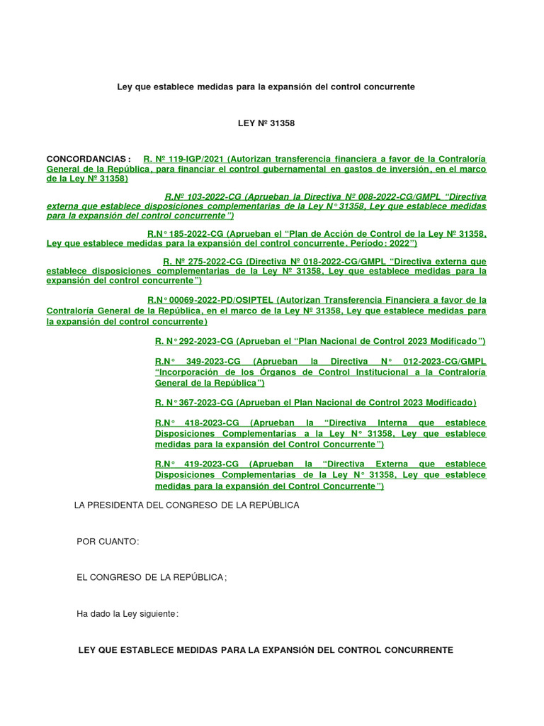 LEY 31358 - Ley Que Establece Medidas para La Expansión Del Control ...