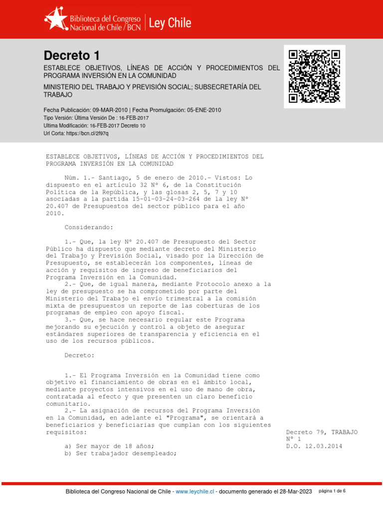 Decreto-1 - 09-MAR-2010 Establece Objetivos Inversión A La Comunidad ...