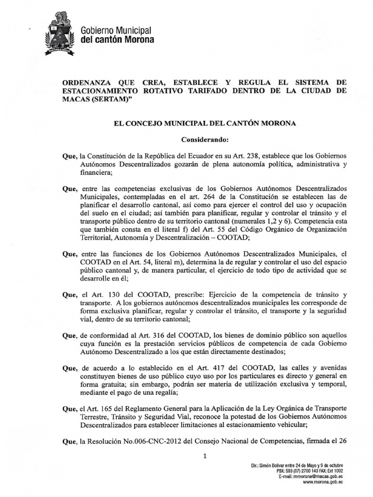 Ordenanza Que Crea Establece y Regula El SERTAM | PDF | Estacionamiento ...