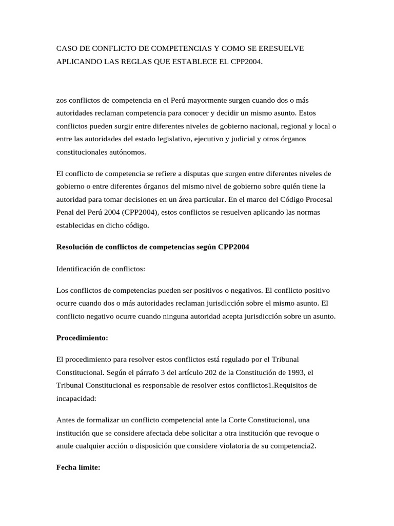 Caso de Conflicto de Competencias y Como Se Eresuelve Aplicando Las ...