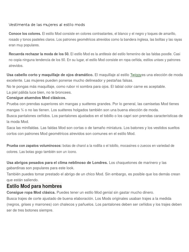 Vestimenta de Las Mujeres Al Estilo Mods | PDF | Ropa | Entretenimiento ...