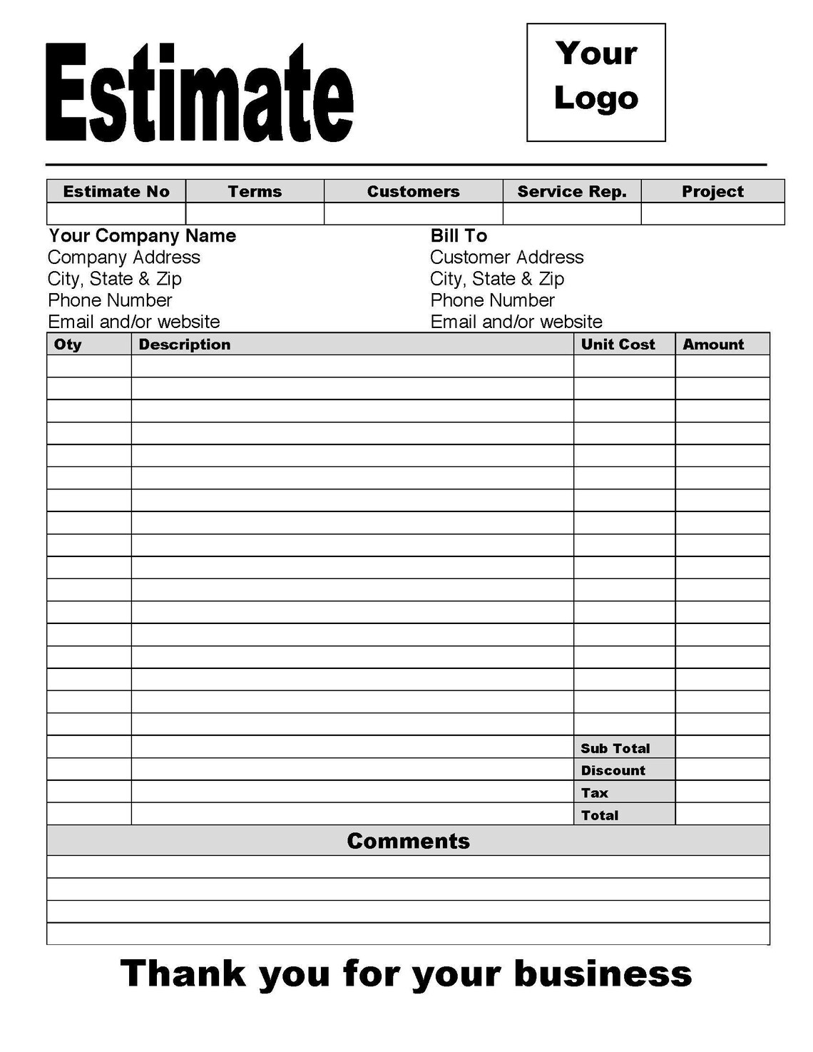 Estimate-invoice, Printable Template , Business Form , Word, PDF ...