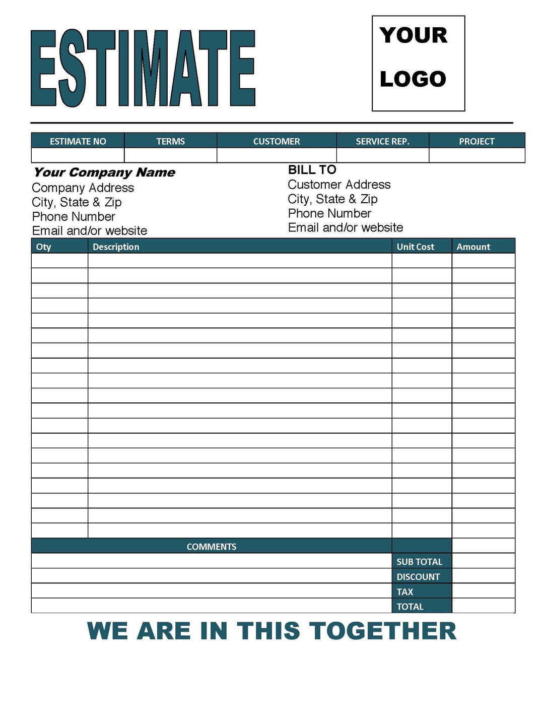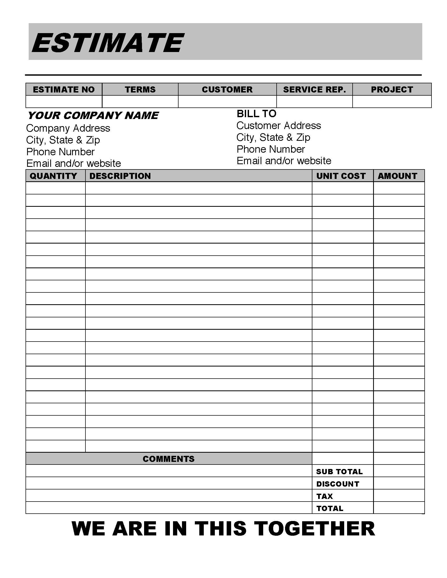 Estimate-invoice Template Word Printable Instant - Etsy