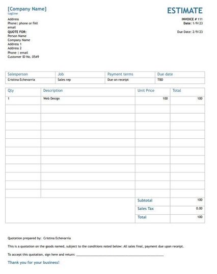 Free Estimate Templates | 100 Styles | Print & Download PDF
