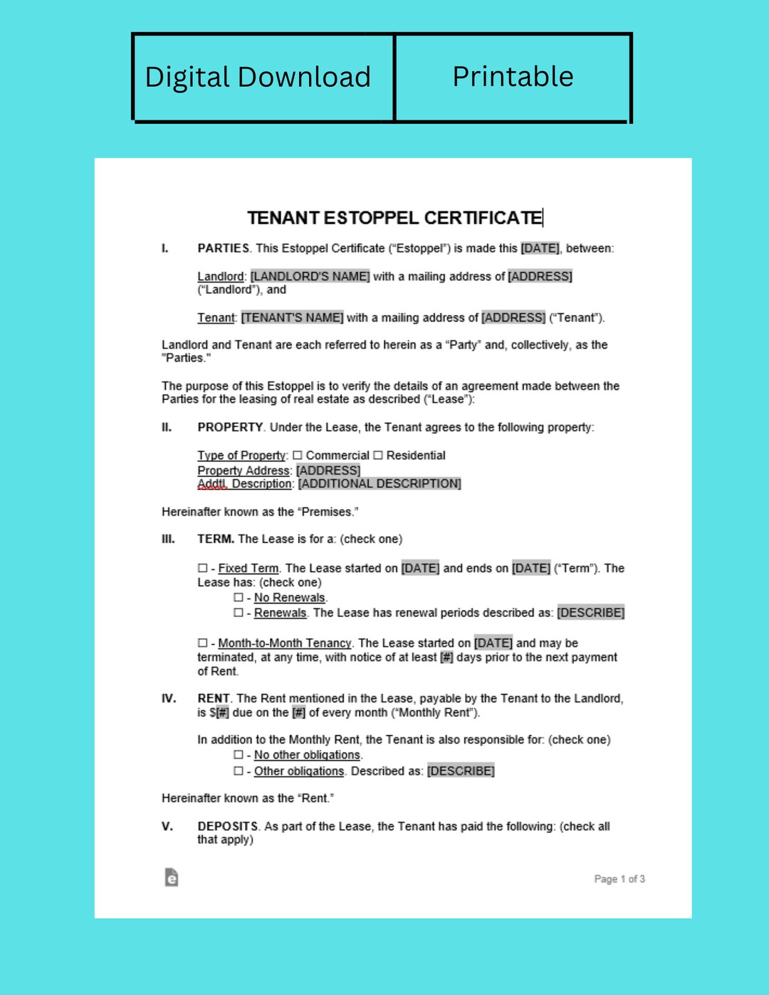 Free Tenant Estoppel Certificate - PDF | Word – eForms
