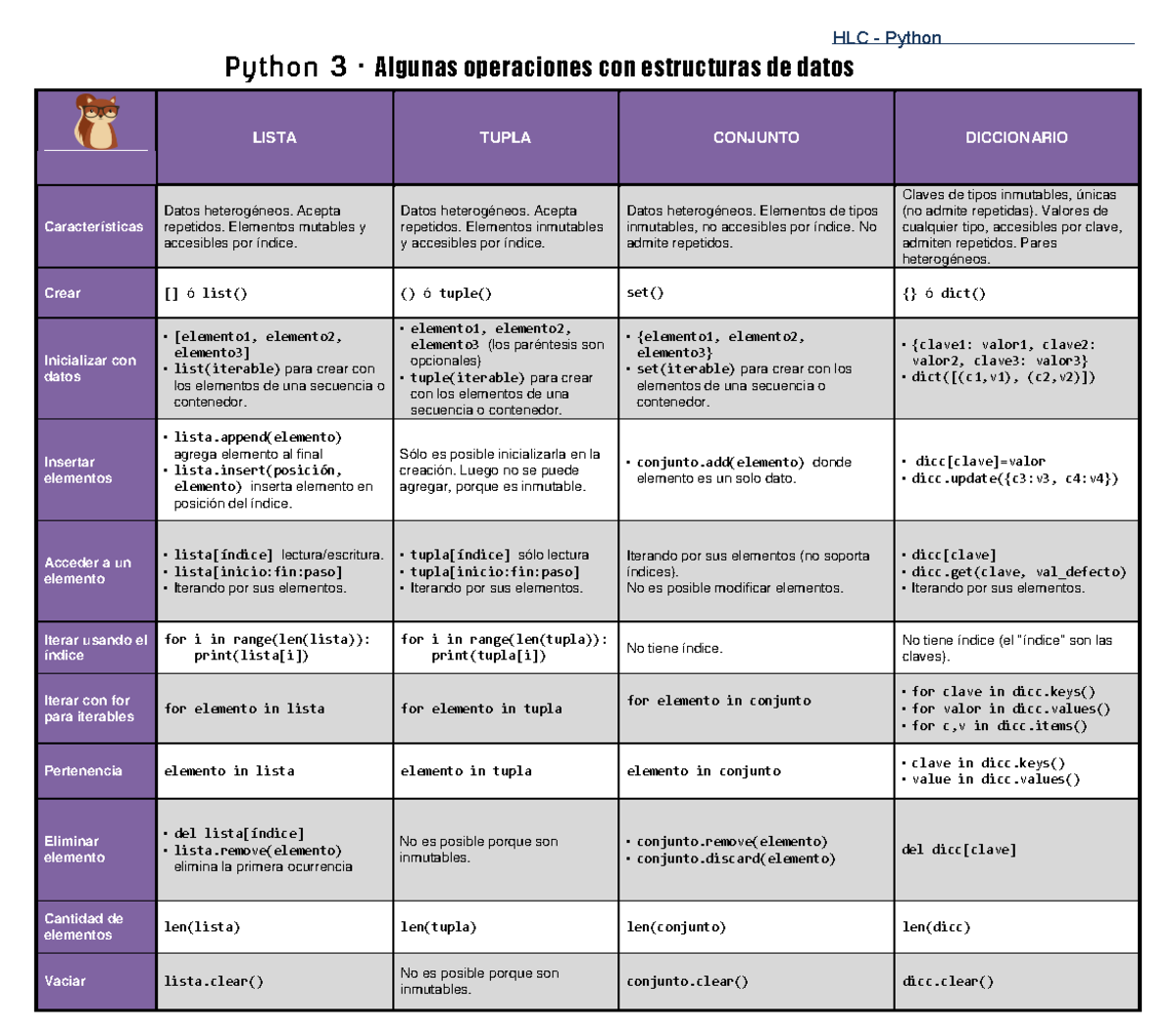 Resumen estructuras datos python - LISTA TUPLA CONJUNTO DICCIONARIO ...