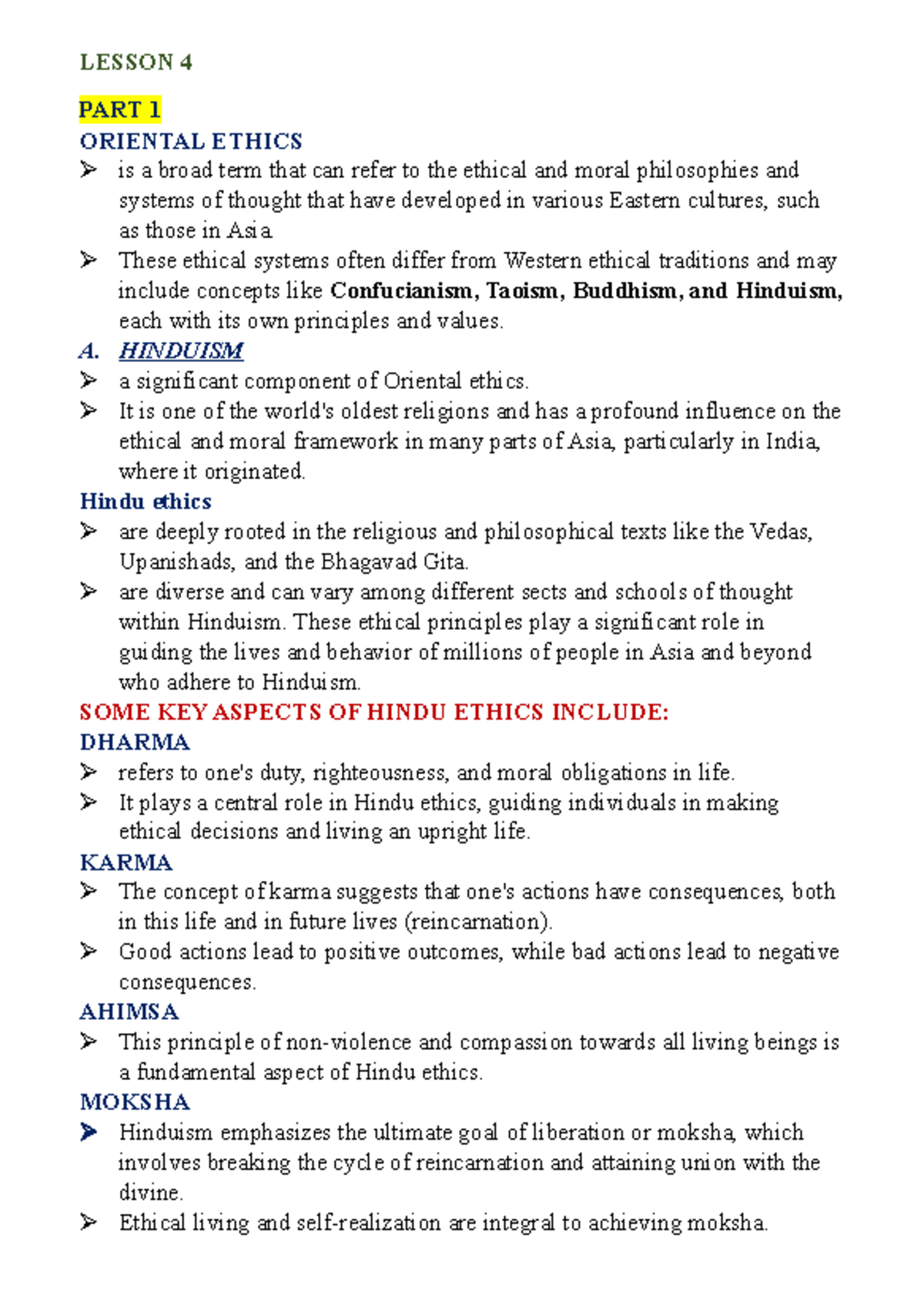 1ST - Ethics Lesson 4 - .... - LESSON 4 PART 1 ORIENTAL ETHICS is a ...