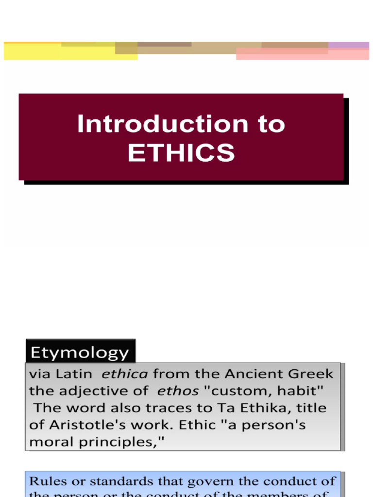 SOLUTION: Ethics lesson 1 introduction to ethics - Studypool