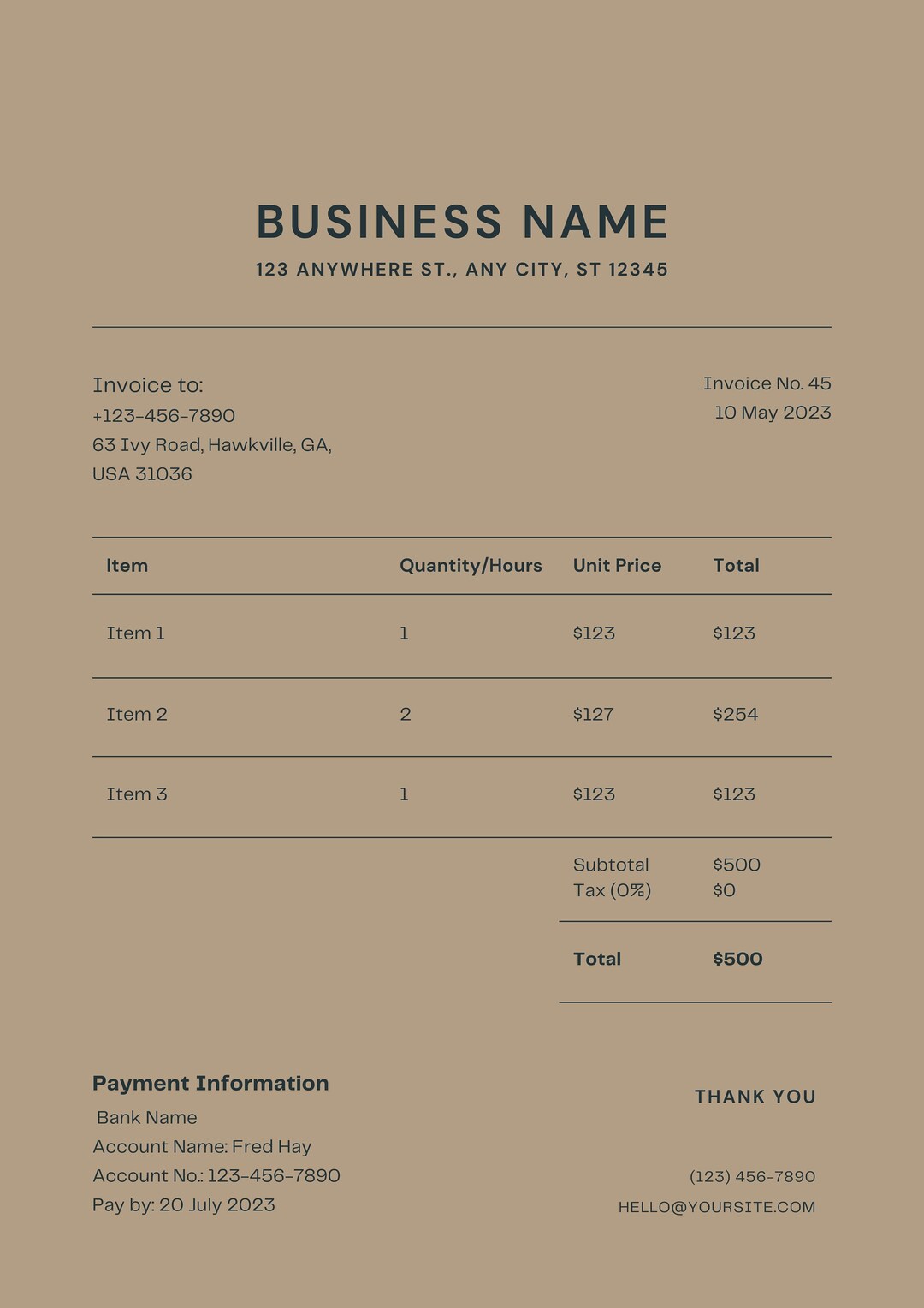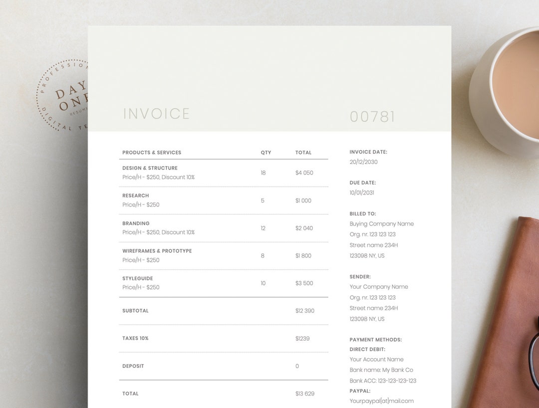 Clean Minimalistic Invoice Template Pdf Light Brown - Etsy