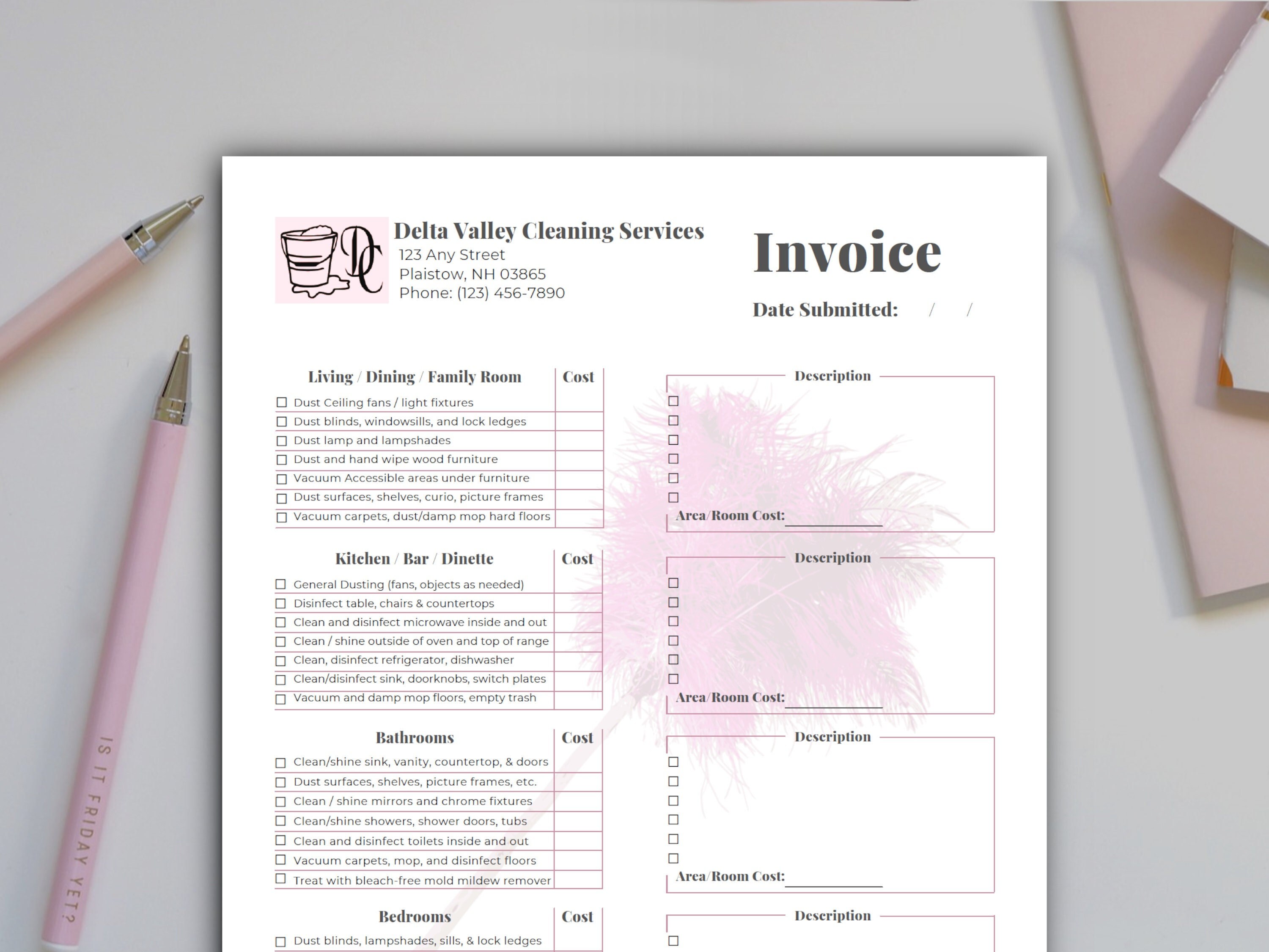 Cleaning Service INVOICE Template PDF (Instant Download) - Etsy